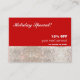 IMAGEM digital espumante de sequências de prata contra fundo vermelho. Um cupão festivo para salões de beleza, spas, cosmetologistas, estéticos, estúdios de dança, boutiques, designers, cabelos e estilistas de moda ou qualquer outro profissional sensível à imagem. design e fotografia de Maura Reed.
