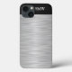 O design moderno moderno elegante e sofisticado é perfeito para o homem ou para a mulher em movimento. Apresenta um padrão de fundo de aço inoxidável escovado com sotaque preto e texto personalizado personalizado personalizado.