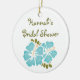 Este o ornamento azul e verde do aqua bonito do hibiscus do chá de panela é perfeito para um chá de casamento temático do luau havaiano ou da praia tropical. As flores azuis com um pólen amarelo aglomeram-se e a samambaia do verde sae. Este o costume e os ornamento personalizados fazem um chá de panela bonito favorecer ou lembrança e presente para que a noiva seja. © Chrissy H. Estúdio dos trabalhos de arte, LLC. Todos os direitos reservados.
