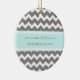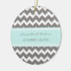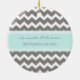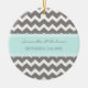 Ornamento customizável do casamento do nome e da data em cinzas de carvão vegetal elegantes e modernas, no teste padrão claro de azul de turquesa, e branco do divertimento da viga de ziguezague. Aperfeiçoe como uma lembrança do Natal para recordar seu dia especial ou para comemorar seu primeiro Natal ou como favores wedding personalizados.