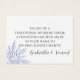 Pratique alguma bondade de casamento quando você arrumar esta elegante carta de doação de casamento no local de recepção dos seus convidados. O Festivo Blue Snowflake Casamento no inverno Charity Favor Card afirma que, em vez de um favor tradicional do partido, foi feita uma doação em seu nome à caridade. Personalize o cartão adicionando o nome da sua caridade favorita e os nomes pessoais da noiva e do noivo. Esta placa de caridade do inverno elegante apresenta um intrincado design com floco de neve com tom azul e fundo branco. Adequado para um tema de casamento elegante de dezembro, Janeiro ou fevereiro azul de inverno maravilhoso.