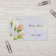 Um simples Cartões de agradecimentos personalizado com espaço para noiva e nomes noivos em um roteiro elegante e um rosebudo rosa antigo de uma pintura botânica antiga em um fundo azul claro e branco. Mais produtos com este design: