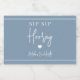 Comece a festa com esses rótulos de garrafa fofos. O design apresenta "sip sip hooray" junto com um coração e o nome do seu evento em letras brancas em um fundo azul poeirento. Perfeito para festas de solteira, fins de semana de garotas e muito mais.