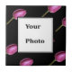 Impresso com padrões de flor de tulipa cor-de-rosa em fundo preto sólido com modelo para fotos personalizadas, isso faz um presente decorativo muito bonito e floral.