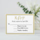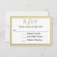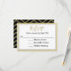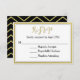 Este simples e elegante cartão de resposta RSVP de casamento é projetado com uma fonte de caligrafia no título "RSVP" e bordado com ouro e borda preta para um apelo moderno e limpo. O verso do cartão de resposta apresenta um padrão moderno de diafragma preto e dourado. Este cartão de resposta é parte da "We Do Modern Chic Wedding Collection" e está pronto para personalizar com seus detalhes de casamento. Basta selecionar o botão "Personalizar" e inserir seus detalhes no modelo à direita. Você pode alterar fontes, cores de fonte e tamanhos, bem como reorganizar o layout do texto para atender às suas necessidades e preferências.