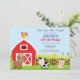 Convite de Aniversário de Fazenda. Barnyard, Fazenda. Galinha De Porco De Vaca. Garoto ou Garota. 1º Aniversário da rua. 6 1rua segundo 3º 5 4º 7 8º 9º 12 10º 11 14 13 15 qualquer idade. Testemunhei o fundo cor-de-rosa, vermelho e branco. Digital Imprimível.