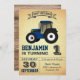 Incêndios aos seus convidados com este legal primeiro aniversario convidado com um lindo trator de fazenda azul com tipografia moderna contra um pergaminho de vintage. Basta adicionar os detalhes do seu evento neste modelo fácil de usar para torná-lo um convite de tipo único. Sacudir a placa para revelar uma textura rústica de madeira de celeiro na parte traseira da placa.