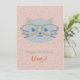 Este cartão de aniversário personalizado de um gato fofo com óculos enormes é perfeito para crianças. As cores azul, amarelo e laranja e o confete em corações, pontos, e estrelas dão a este cartão de aniversário colorido uma sensação única. Deseje ao seu filho um feliz aniversário com uma nota sincera. Você trará um sorriso para a cara deles!