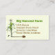 cartões de visitas de fazenda com texto em ambos os lados. Pedaços de milho e design de pá. Os cartões amarelos claros têm texto verde e em negrito para o nome da fazenda. Listar eventos ou especialidades abaixo do título. No verso, adicione mais informações no texto do parágrafo. Utilização para anunciar uma posição de fazenda, o mercado do agricultor ou outras atividades relacionadas com a agricultura.