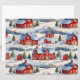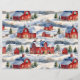 Um belo padrão de inverno com uma cena de inverno country com neve vermelha coberta de cascos.