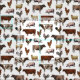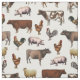 Tecido maravilhoso de colheita com animais de exploração combinados: vacas, porcos, galos e ovelhas.