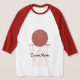 A pintura de basquete entrando na cesta, com espaço reservado para o nome da equipe, é impressa em t-shirts.