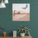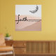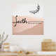 Mensagem poderosa Fé pode Mover Montanhas com fundo rosa, ramificação de oliveira e texto fluindo. Inspiração em qualquer sala. Citações bíblicas (Matthew 17:10) Download físico e digital.