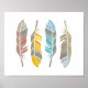 A ilustração original de Kat Parrella apresenta quatro penas coloridas numa série de tons de terra neutra.