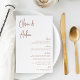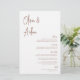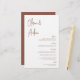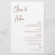Projetado para combinar com nossos convites de casamento de Script Manuscrito Moderno. Uma bela design baseada na tipografia, com uma sensação minimalista, com uma escrita manuscrita de terracotta moderna e uma letra serif clássica. Personalize com seus itens de menu com oito campos de texto personalizados.