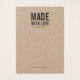 Cartão de expositor russo kraft com as palavras "Made with Love" em caracteres negros e um script de na moda para seu nome ou nome de loja em cores escuras é perfeito para joias feitas à mão ou vintage. Você pode mover a camada "Guia de furos" na frente para cima ou para baixo conforme desejado ou excluí-la. Personalize-o substituindo o texto do marcador de posição. Para obter mais opções, como alterar a fonte, seu tamanho e espaçamento entre letras, clique no botão "Personalizar". *Observe que a Marca d'água do Zazzle que aparece na visualização de zoom NÃO aparecerá no produto impresso final. © Rosewood e Citrus
