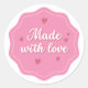 Feita com um adesivo rosa com amor - Etiqueta cômo