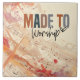 O azulejo cerâmico retrata um fundo de abstrato com aquarela com velhas folhas de música. Ele apresenta uma citação cristã inspiradora, "Feita ao Culto."