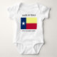 Bandeira de Texas com cores colombianas da bandeira com "feito em Texas" acima e "com peças colombianas" embaixo.