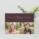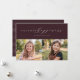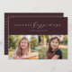 Este cartão com fotos elegante apresenta um tratamento do tipo Felicidade Feriada em branco contra um fundo de vinho de ameixa rico com duas fotos horizontais. A parte de trás é uma cor de vinho listrado coordenadora. Este cartão de férias é a forma perfeita de enviar saudações à família e aos amigos.