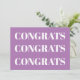 Parabéns, Parabéns, lavanda e Cartão de Nota branco moderno. Elegante, design moderna.