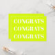 Parabéns, Parabéns, placa de notas moderna branca de verde limão chartreuse. Elegante, design moderna.