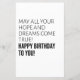 Que toda sua esperança e sonhos se realizem, feliz aniversário para você. Incrível ideia de presente de aniversário para seu amigo, parente, marido, esposa, mãe, pai, filhos, namorado, namorada, irmão, irmã, avô, avó, tio ou tia. Feliz aniversário.