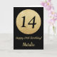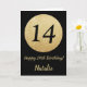 Feliz 14 de aniversário preto e Dourado cartão bri
