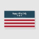 Deseje aos seus entes queridos um Feliz Dia da Independência com este Feliz Cartão Magnet de 4 de julho de 2010, Patriótico Bandeira Americana. A frente da placa de ímã tem uma bandeira americana moderna vermelha, branca e azul como a design tem a saudação "Happy 4th of Julho" em letras brancas em faixa azul escura com três estrelas. Tem listras vermelhas e brancas na área inferior. Sua assinatura "de" nome ou nome da família está abaixo das estrelas.