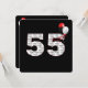 Convite para festa de aniversário com negrito preto e branco feliz e 55 texto em preto com buquê de balão de festa