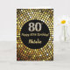 Feliz 80 Aniversário Preto e Dourado Cartão Brilha