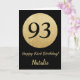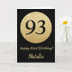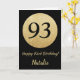 Feliz 93º Aniversário, preto e Dourado cartão bril