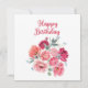 Feliz Aniversário Aquarela Flores Vermelhas e Rosa