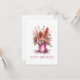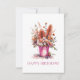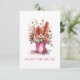 Mande desejos calorosos com este charmoso cartão de aniversário. O design apresenta uma maravilhosa pilha de baldes de flores que transbordam com flores vibrantes, cor de laranja, rosa, vermelha e roxa, misturando favoritos clássicos de jardins de chalé com flores indígenas australianas icônicas, como waratahs, patas canguru e roxos de eucalipto. A ilustração feita à mão, ao estilo aquarela e o texto alegre "FELIZ BIRTHDAY!" na frente fazem dela uma escolha perfeita para qualquer um que ama arte floral com um toque local australiano