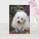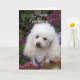 Feliz Aniversário Poodle no cartão de saudação das flores