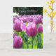 Tirei esta foto original numa viagem à Holanda. Que melhor do que as tulipas fotografadas na Holanda? Campos de tulipas roxas impressionantes, jardim, num cartão de cumprimentos de aniversário para qualquer um. Veja minhas designs em www.zazzle.com/javajeninga* Todas as fotos originais no zazzle por Laurel Jeninga, www.createdbylaurel.com