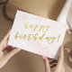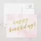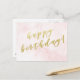 NewParkLane - Cartão postal elegante, com o desejo 'Feliz Aniversário' em tipografia de roteiro de folha de ouro falso elegante, contra um fundo de aquarela rosado