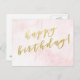 NewParkLane - Cartão postal elegante, com o desejo 'Feliz Aniversário' em tipografia de roteiro de folha de ouro falso elegante, contra um fundo de aquarela rosa
