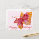 NewparkLane - Cartão postal alegre e colorido, com uma colorida flor de hibisco havaiano em vermelho, rosa e laranja. Com um fundo rosa suave e 'Feliz Aniversário!' em uma tipografia vermelha divertida. Cartão divertido e boêmio para enviar para o aniversário de uma garota!