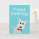 Cartão de Aniversário Feliz e Turquesa Bonito com um Cão Branco Terrier Westie Terrier. A carta é vazio dentro. Procure mais itens correspondentes na nossa loja!