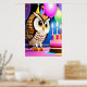 Feliz Aniversário, coruja, bolo| AI Art Poster