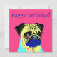 Feliz aniversário de Pug Pop art, bonito e colorid