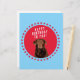 Foto fofa bonita de um cão Labrador Retriever que deseja "Parabéns" com fundo azul e pontos vermelhos