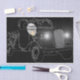 Papel de tecido dotado com caminhão de safra preto e branco com um balão que diz Feliz Aniversário.