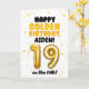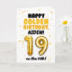Celebre os 19 anos no dia 19 com este cartão de Feliz Aniversário Dourado! Com um tema dourado brilhante e alegre, este cartão tem um layout divertido e ousado com detalhes de confetes e um grande número de balão dourado. Personalize-o com um nome na frente e no interior do cartão para tornar o aniversário dourado ainda mais especial!