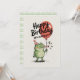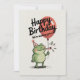 Este adorável design de aniversário apresenta um sapo verde fofo vestindo um chapéu de festa listrado vermelho, segurando um grande balão vermelho e soprando uma corneta de festa. O texto divertido diz “Feliz Aniversário, Estamos desejando a você…” com acentos coloridos de confete. Perfeito para crianças e amantes de animais, esta ilustração alegre e divertida traz sorrisos para qualquer celebração. Ideal para cartões de aniversário, convites de festa ou impressões festivas com charme caprichoso.