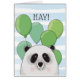 Cartão "Feliz aniversário" com panda em cores azul e verde.