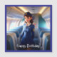 Este cartão de aniversário magnético apresenta uma aeromoça num avião.