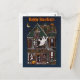 Mande cumprimentos felizes para seu amigo com este cartão postal divertido, com uma casa assombrada e detalhada, com fantasmas escondendo-se nas janelas e morcegos voando do belfrade.