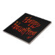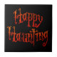 Texto "Feliz Assalto" em letras laranja espectrais, com alguns olhos fantasmagóricos, um design humorístico para um Halloween assombroso